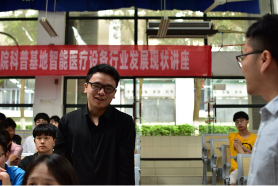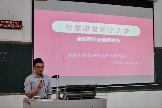 在讲座活动中,石青峰总监以“智慧康复医疗之梦——康复医疗设备新趋势”为主题,从康复智能医疗设备行业现状、设备应用、发展趋势等方面,结合公司产品研发、岗位技能需求和个人的行业经验,为公司师生讲授了一堂别开生面的康复智能医疗设备行业发展的科普课。