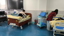 具体的练习项目有:协助老人向床头移动和翻身侧卧操作、床上洗发器洗头技术操作、床上更单技术操作等。