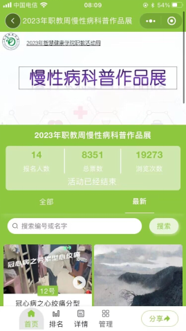 在重庆电子工程职业公司2023年成渝地区双城经济圈职业教育活动周中,太阳成集团tyc151cc健康管理专业的同学们,充分利用课堂所学专业知识,结合校园实际生活场景,从疾病的发生、临床表现、治疗、预防等多角度对慢性病进行科普讲解。大家重点围绕脑卒中的急救、帕金森病的症状、高血压的危险因素和预防、冠心病的症状和治疗方面等进行科普。
