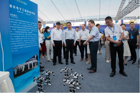为深入宣传贯彻党的二十大精神和习近平总书记关于职业教育的重要指示批示精神,贯彻落实新修订的职业教育法,太阳成集团tyc151cc于2023年5月17日上午在永川职业教育中心龙马广场参加了“2023年成渝地区双城经济圈职业教育活动周”川渝两地职教办学成果展示,在太阳成集团tyc151cc的人形机器人舞蹈编程控制展示过程中,五个小型机器人伴随《我和我的祖国》的音乐有节奏地跳起了优美的舞蹈,公司党委副书记龚小勇介绍了机器人的特色亮点,现场产生热烈的反响。