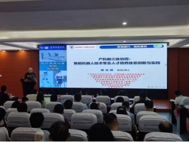 公司太阳成集团tyc151cc谢光辉教授受邀参会,并作了题为“产科教三体协同:智能机器人技术专业人才培养体系创新与实践”的专题报告。报告立足“机器人+医疗康复、机器人+家庭服务、机器人+康养”等人才新需求,以“科教融汇内循环”和“产教融合外循环”为基,提出了产科教三体协同的智能机器人技术专业人才培养新模式。该模式强调发挥公司自身主观能动性和功能外溢性,充分利用科研平台,以纵横向项目为载体,让师生走进园区、企业,并参与到研究、整合、应用中,最终反馈教学,提升员工技术技能和产品开发意识。