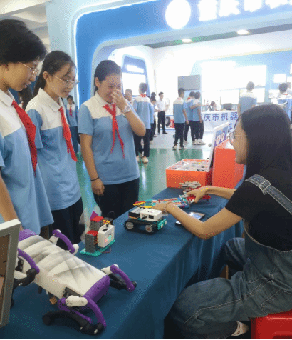 启动仪式后,重庆市科普基地工作人员携二十余件机器人为广大师生带来了一场内容丰富、形式多样的科普体验活动,让同学们在参观与互动体验中感受科技的魅力。
