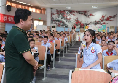 在刘博士的精彩讲座后,重庆电子工程公司科普基地负责人赵鹏举教授与同学们互动,同学们也非常积极的参与,踊跃举手,通过同学们的讲述了,了解到他们长大后的理想有医生、警察、消防员,并且知道他们希望机器人能够帮助他们做手术来减轻医生的工作强度,帮助警察逮捕坏人警察就不会受伤,还有帮助消防员抢救火灾这样就不会有消防员牺牲了。