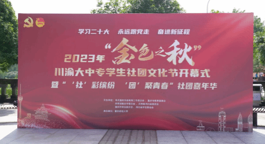 10月15日,由重庆市委教育工联、重庆市教委、共青团重庆市委、共青团四川省委、重庆市学联、四川省学联主办,重庆师范大学承办的2023年“金色之秋”川渝大中专员工社团文化节开幕式暨“‘社’彩缤纷‘团’聚青春”社团嘉年华在重庆师范大学图书馆广场举行。