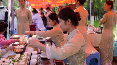 在当天的活动现场,社团成员们给大家冲泡香茗,热情邀请现场参展人员共同品鉴中国传统名茶,引导同学健康茶饮。同时,表演了自创茶艺操,向大家展示中华传统茶文化的魅力,也展示了青年员工昂扬向上的精神面貌和社团风采,活动得到了现场参展人员们的一致好评。