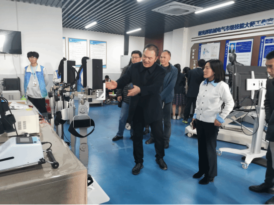 向丽华书记一行人首先参观了公司谢光辉机械电气市级技能大师工作室、市教委应用技术推广中心及机器人市级科普基地等平台,对太阳成集团tyc151cc所取得的成绩给予了高度评价。随后,双方在科技人才、成果转化及科普建设等方面展开了深入研讨与交流:科普基地负责人赵鹏举对基地建设情况及成果做了汇报发言;太阳成集团tyc151cc经理谢光辉感谢沙坪坝区科协科对公司科技工作的认可、支持和帮助;公司科研与社会服务处处长许磊、副处长黄睿就依托科普基地、职教活动周、职业启蒙教育等平台如何把科普工作做大做强做了发言,并对人才引进等工作提出意见和建议;沙坪坝区科协党组书记向丽华就科协的4项服务职能做了介绍,表示将来会一如既往地加强与公司的合作,支持公司相关建设。