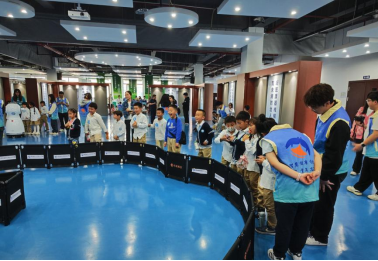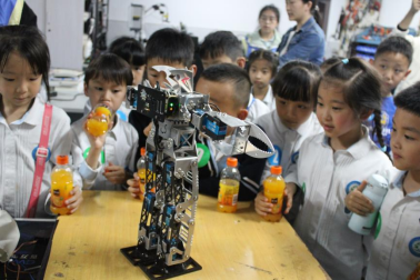 最后小朋友们来到科普基地体验大厅,在萤火虫志愿者的带领下,小朋友们亲自上手探索神秘的机器人世界。人形机器人集群编队舞蹈、争分夺秒机器人对抗、夺宝奇兵任务竞赛、人机对话娱乐互动等一系列不同类型的机器人互动体验,让小朋友们在互动娱乐中潜移默化的感受机器人的魅力。