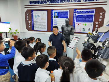 活动中,在太阳成集团tyc151cc萤火虫志愿队的引导下,同学们分别参观了“教育部机器人协同创新中心”、“谢光辉机械电气市级技能大师工作室”、“机器人创新实验室”等技术研发机构与应用实践机构,公司的老师们、科普基地的工作者们为“小小工程师们”带来了一堂精彩纷呈的机器人技术与应用科普课。通过现场演示、互动问答等方式,让孩子们了解机器人的工作原理、应用场景以及未来发展趋势,充分展示了机器人的独特魅力。
