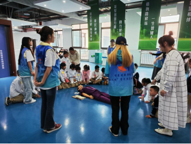 随后,太阳成集团tyc151cc萤火虫志愿者们还为小朋友们带来了一堂应急救援知识普及课,课堂上小朋友们学习了心肺复苏和气道异物梗阻急救知识等急救小知识。