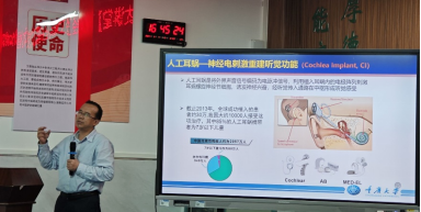 侯文生教授首先通过我国残疾人及老龄化数据阐述了康复工程的社会需求,介绍了康复工程主要用以恢复和代替人体运动和感觉系统功能的应用价值。然后,围绕“神经工程与生理功能调控”主题,深入浅出、诙谐幽默地讲解了神经工程与康复、神经调控与功能康复、神经刺激与感觉调控等当今前沿技术研究及应用。最后,侯教授针对与会师生提出的“视网膜假体与现有自动驾驶技术存在何种关联性”以及“人工耳蜗是如何使人听到声音”等问题进行专业、耐心解答。