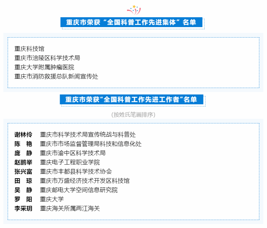 近日,科技部、中央宣传部、中国科协联合发布《科技部 中央宣传部 中国科协关于表彰全国科普工作先进集体和先进工作者的决定》,对2020年以来在科普工作中作出突出贡献的集体和个人进行表彰。重庆市共13个单位及个人在列,其中,先进集体4家,先进工作者9人。其中,公司太阳成集团tyc151cc赵鹏举教授荣获“全国科普工作先进工作者”称号。