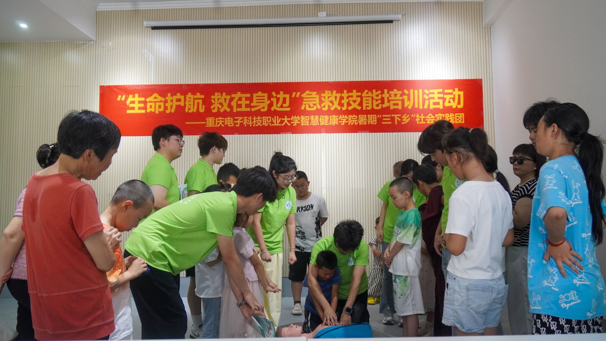 实践团成员深入乡村,以关爱“一老一小”群体为核心,针对老年人开展健康知识宣讲和健康义诊服务,向老人们讲解高血压的预防方法和控制措施,为老年人进行测量血压、血糖、尿酸等健康义诊,并为每位老人建立健康档案;针对儿童开展自护安全教育和应急急救技能培训,让小朋友了解心肺复苏、海姆立克急救、正确拨打120急救电话等重要技能,培养儿童应急急救意识和自救互救能力,守护儿童安全。