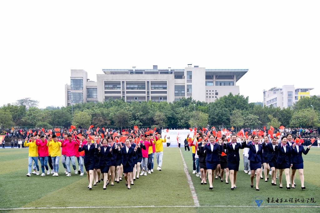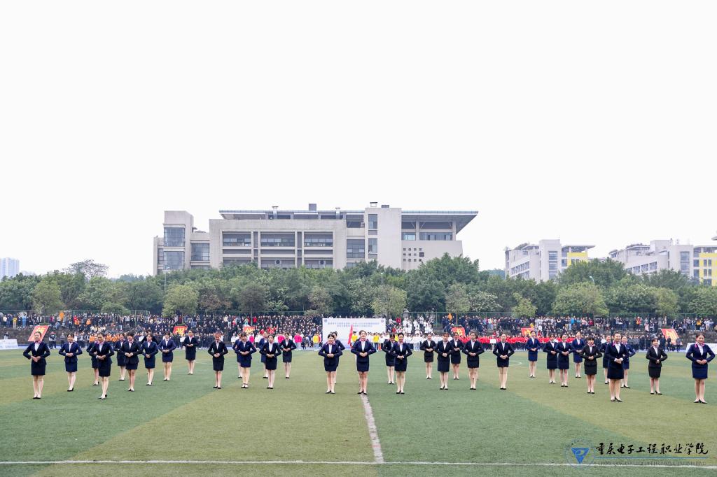 11月14日至11月16日,重庆电子工程职业公司“2019-2020学年健康校园杯”综合性运动会田径比赛暨第二届教职工团建运动会在重电奕辉运动场隆重举行。运动会开幕式上,公司女生方队身穿职业正装,优雅大方地为全校师生带来了具有专业特色的礼仪操;男生方队则通过充满活力的舞蹈传递出公司学子的青春风采。创意十足的方阵表演赢得了观众的阵阵喝彩和掌声。