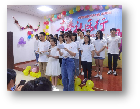 经过简单的培训我了解到,“青春社区行”活动是我们白马社区在暑假期间组织老员工志愿者为社区的小员工们开展公益课堂、体育锻炼的志愿服务活动。在8月3日到8月23日这三周的志愿服务活动中,我们重点向小员工们讲解一些文明礼仪、垃圾分类等生活小知识以及国粹传承、成语故事等传统文化,带领小员工们进行手工制作、开展简单的科学实验和体育锻炼。活动的最后一天晚上,我们老员工志愿者与社区工作人员一起,精心筹备了一次汇报演出。大小员工一起在社区居委会的二楼大会议室里举办了 “青春社区行”的汇报演出:有小朋友们包含深情的诗朗诵和环保时装秀,也有老员工们真挚的歌声和热情的舞蹈。