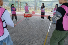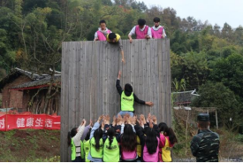 在场全体人员随机分成3支队伍,各队队员集思广益、通力合作,以团队合作的方式顺利完成了“击鼓颠球”、“多人多足螃蟹走”“攀爬毕业墙”等互动体验活动项目,项目结束后,分享感悟,进行总结交流。