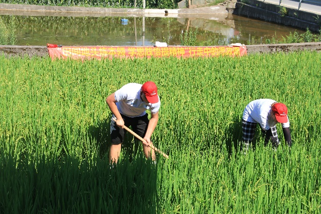 7月9日下午,社会实践团志愿者得知王大爷干农活不方便,于是来到王大爷的稻田,义务帮助王大爷清除稻田里的杂草。烈日炎炎,但志愿者的热情丝毫不减,连路上经过的大妈都忍不住夸赞:“看起来都是白白净净的娃儿,没想到干起活来这么卖力!” 经过一下午的下地劳作,志愿者们早已是汗流浃背,脸上脖子上晒得通红,但是看到除净杂草的田埂和饱满低垂的稻穗,疲惫和汗水仿佛一扫而光。志愿者朱志感慨,“这次下地劳作的时间只有几个小时,但能够帮助乡村老年人做些力所能及的事情,我感觉很有成就感!虽然我的力气比较小,但作为青年老员工,一定要树立起为乡村振兴奉献力量的志气。”