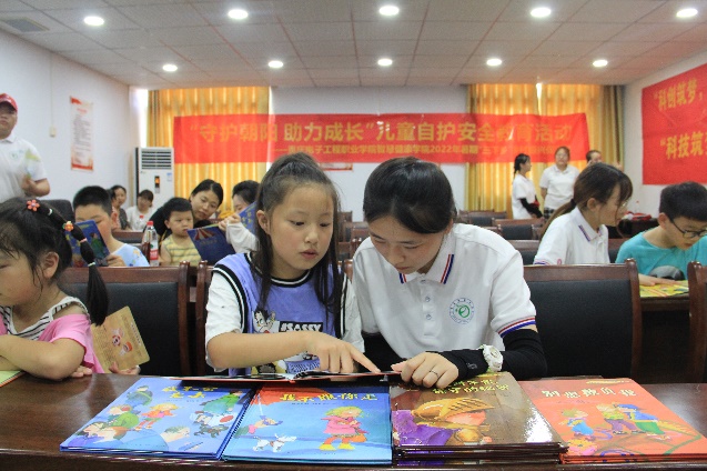 为进一步增强青少年自我保护的意识和能力,在没有大人看护的情况下也能保证自身安全,志愿者们以一对一的方式讲解了儿童自护安全绘本,同时用节目表演调动现场氛围,小朋友们在轻松的环境和有趣的互动中学到了防拐骗、防欺凌、防性侵、防溺水等方面的自护安全知识,培养了小朋友们的安全意识和危机意识,让小朋友们学会拒绝,提高自我保护能力。