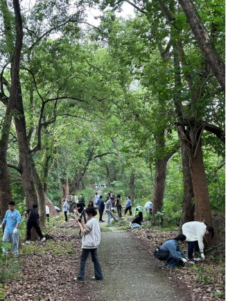 下午14:00点师生乘坐大巴准时来到歇马老校区集合,先发放清洁工具,然后由罗书记进行简单的活动介绍并带领大家来到公司所负责的公共区域分小组进行清理。老校区绿化面积大,植被生长繁茂,杂草茂密丛生,长期“霸占”人行道,师生们不怕苦、不怕累,撸起袖子就开始清理。师生们相互配合协作,利用锯子、铲子等工具对道路两旁灌木进行矮化处理,有的徒手拔除“顽固”杂草、有的捡拾草中垃圾、有的“打包”残枝落叶、有的清运杂草树枝。经过三个小时的辛勤劳动,道路落叶杂草清理一空,环境得到明显改善。