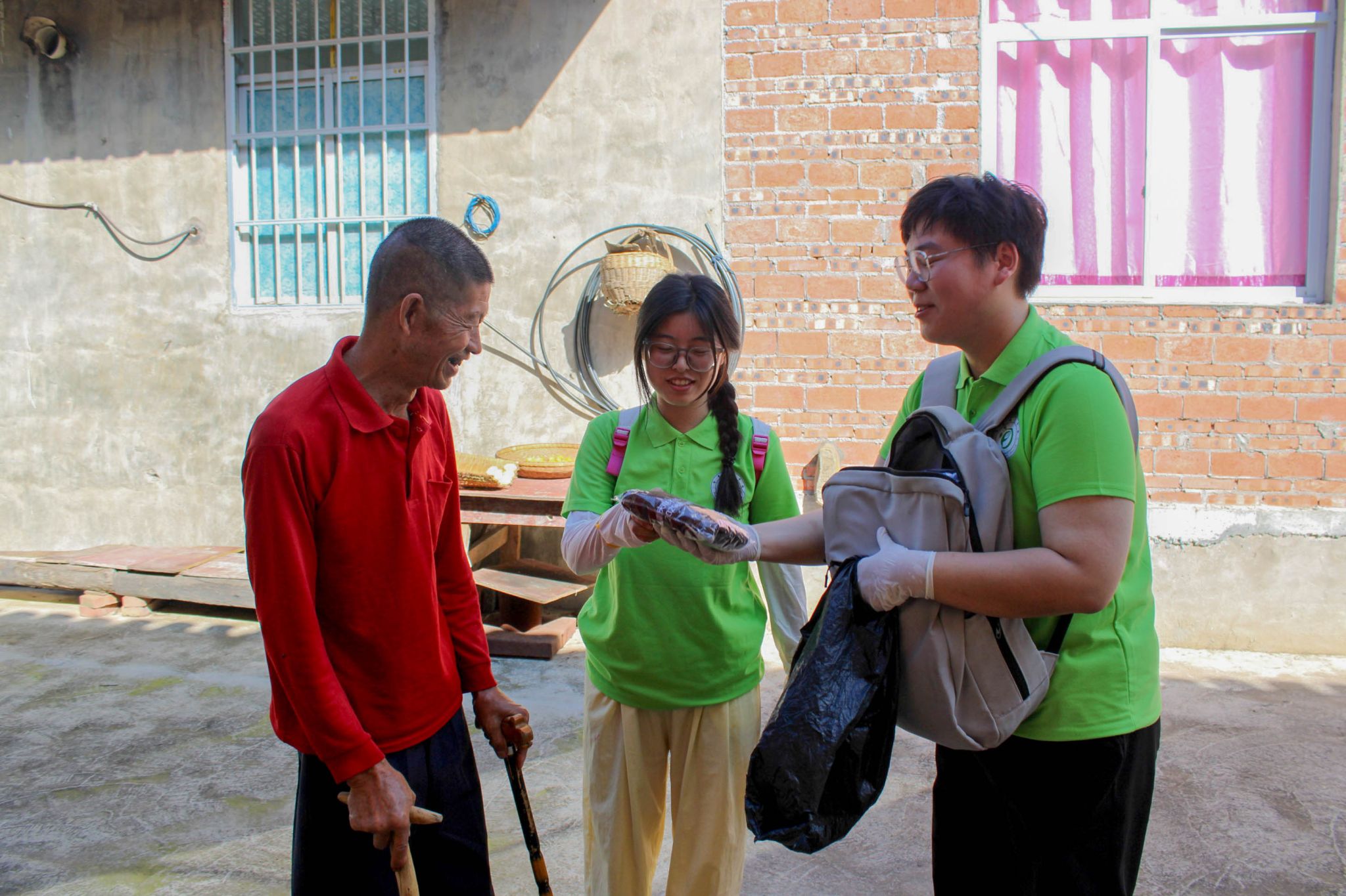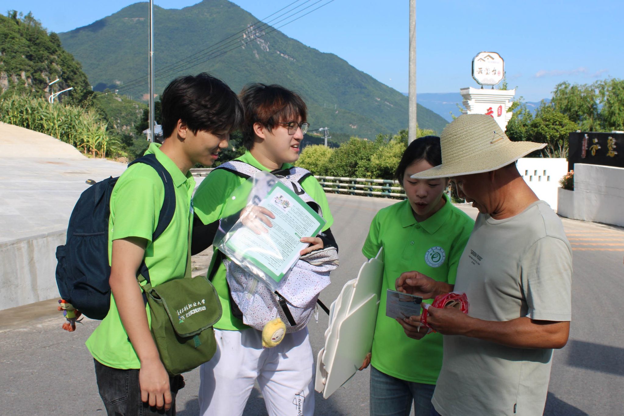 实践团成员们深入乡村开展多元实践活动,一方面走村串户以趣味方式普及普通话知识,通过亲切交流帮助村民纠正发音、提升语言表达能力,为乡村教育文化发展夯实语言基础。与此同时,他们手持垃圾袋沿村道田野捡拾垃圾,同步向村民宣传环保知识、倡导绿色生活方式,以实际行动为乡村生态文明建设添砖加瓦。此外,成员们还深入田间地头与村民同劳动共交流,积极参与农作物种植、果实采摘等农事活动,在挥洒汗水中感受丰收喜悦,为乡村产业发展注入青春活力。