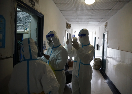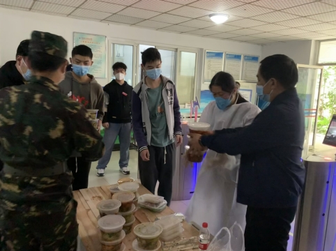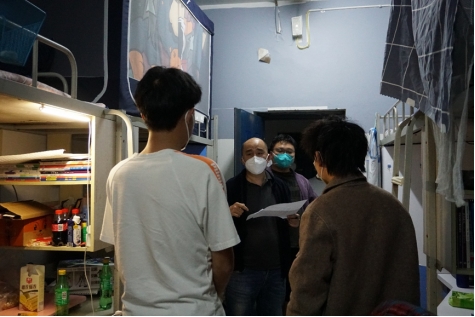 刘志远老师带领党员同志走访重点寝室,勉励员工坚决打赢疫情防控这场硬仗
