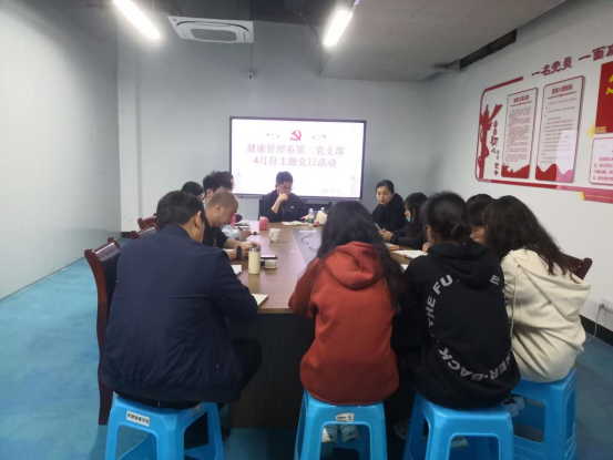 2023年4月6日下午2:30智慧健康管理系第二党支部在16-424开展了关于“学思想 强党性 重实践 建新功”的主题党日活动,会议由健康管理系第二党支部书记王保良同志主持。