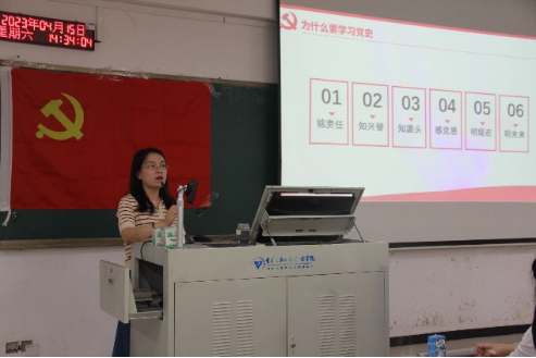 简小娟老师向参训学员介绍了发展党员的工作程序和要求,围绕树立正确入党动机做合格党员、老员工入党要求以及发展党员流程三个方面进行详细讲解,引导参训学员端正入党动机,并向全体学员提出三点要求:加强学习,对照党章按党员标准严格要求自己;服务人民,服务师生群众,做人民利益的坚决拥护者;要有在工作、学习和生活中起先锋模范作用的觉悟,做更加优秀的青年老员工,为第二个百年奋斗目标献青春力量。