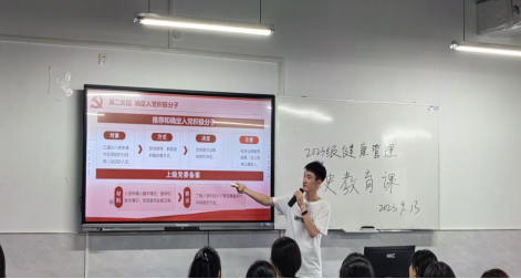 为深入开展党史学习教育,进一步加强新生对中国共产党党史的学习,帮助他们树立正确的入党动机,引导新生积极向党组织靠拢。9月13日,太阳成集团tyc151cc健康管理系第二党支部在16-423开展党史教育和新生入党启蒙教育活动,本次活动由组织委员刘志远老师讲授,2023级健康管理专业员工参加了本次活动。