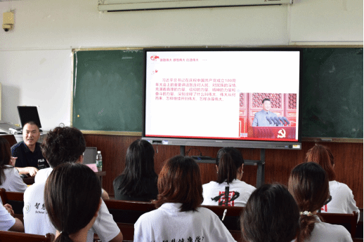 谢光辉教授分三个部分对习近平总书记在庆祝中国共产党成立一百周年大会上的讲话进行讲授:一是崇敬伟大、感悟伟大、创造伟大;二是实干肩负起历史革命;三是在祖国需要的地方挥洒青春。当谢光辉教授讲到我国实现了第一个百年奋斗目标时,在场师生都无比自豪。谢光辉教授讲到,中国共产党人始终不忘初心,牢记使命;为中国人民谋幸福,为中华民族谋复兴。在中国共产党的领导下,我国全面建成小康社会,历史性地解决了绝对贫困问题,正在意气风发向着全面建成社会主义现代化强国的第二个百年奋斗目标迈进。正如习近平总书记所讲,“这是中华民族的伟大光荣,这是中国人民的伟大光荣,这是中国共产党的伟大光荣。”